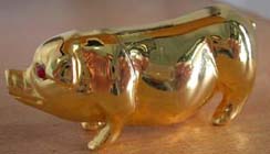 is a gold plated two inch pig which is known to bring wealth and